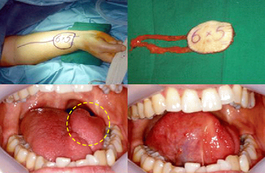 재건술에는 팔의 피부를 채취하는 유리전완피판술을 가장 많이 이용합니다. 최근에는 허벅지의 피부를 이용하여 구강내 연조직을 재건하는 방법도 많이 시행되고 있습니다.